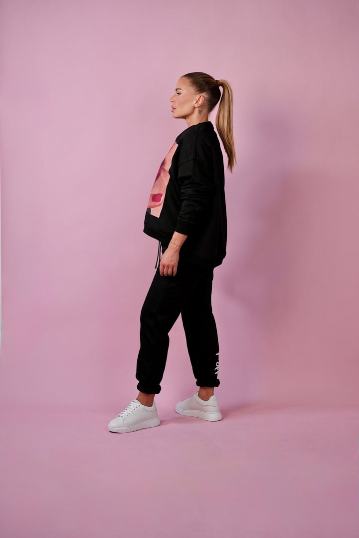 Výrazný streetwear kousek, který spojuje pohodlí a odvážný design. Černá unisex mikina v oversized střihu upoutá velkoformátovým potiskem smyslných rtů s červenou rtěnkou – symbolem sebevědomí, vášně a originality.