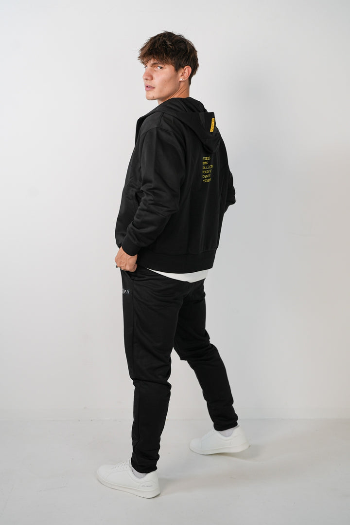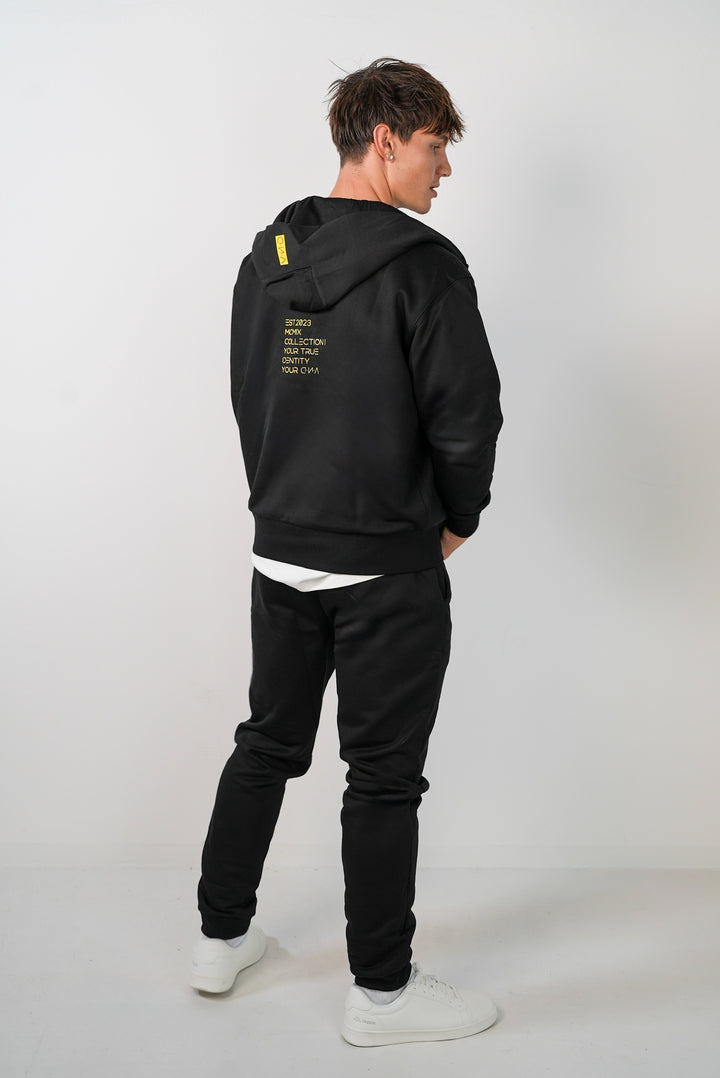 Minimalistická, pohodlná a nadčasová – černá mikina na zip s kapucí, která je ideálním základem pro každý streetwear nebo casual outfit. Přední část je čistá a jednoduchá, zatímco na zádech najdeš výrazné logo DNA EST. 2023, které dává mikině charakter a osobitost.